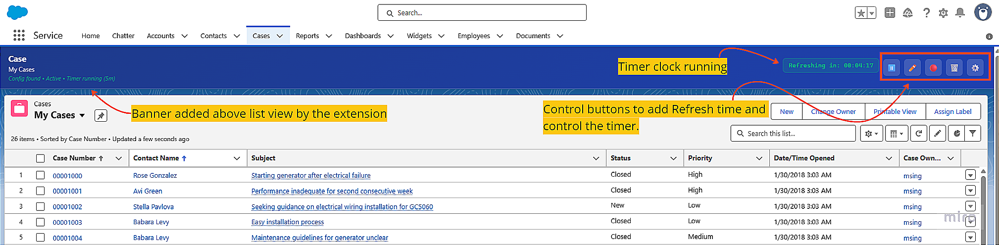 Customer service reps can now see new cases appear in real-time without needing to refresh. Perfect for shared monitors in high-traffic support environments.