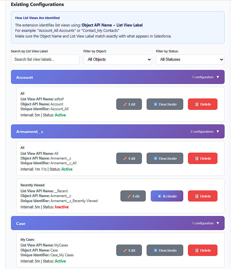 🔍 Separate Refresh interval for each list view – Configure separate refresh intervals for any Salesforce object and its individual list views.